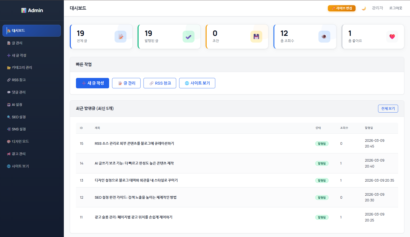 블로그 운영에 필요한 모든 기능이 이미 여기에 있습니다